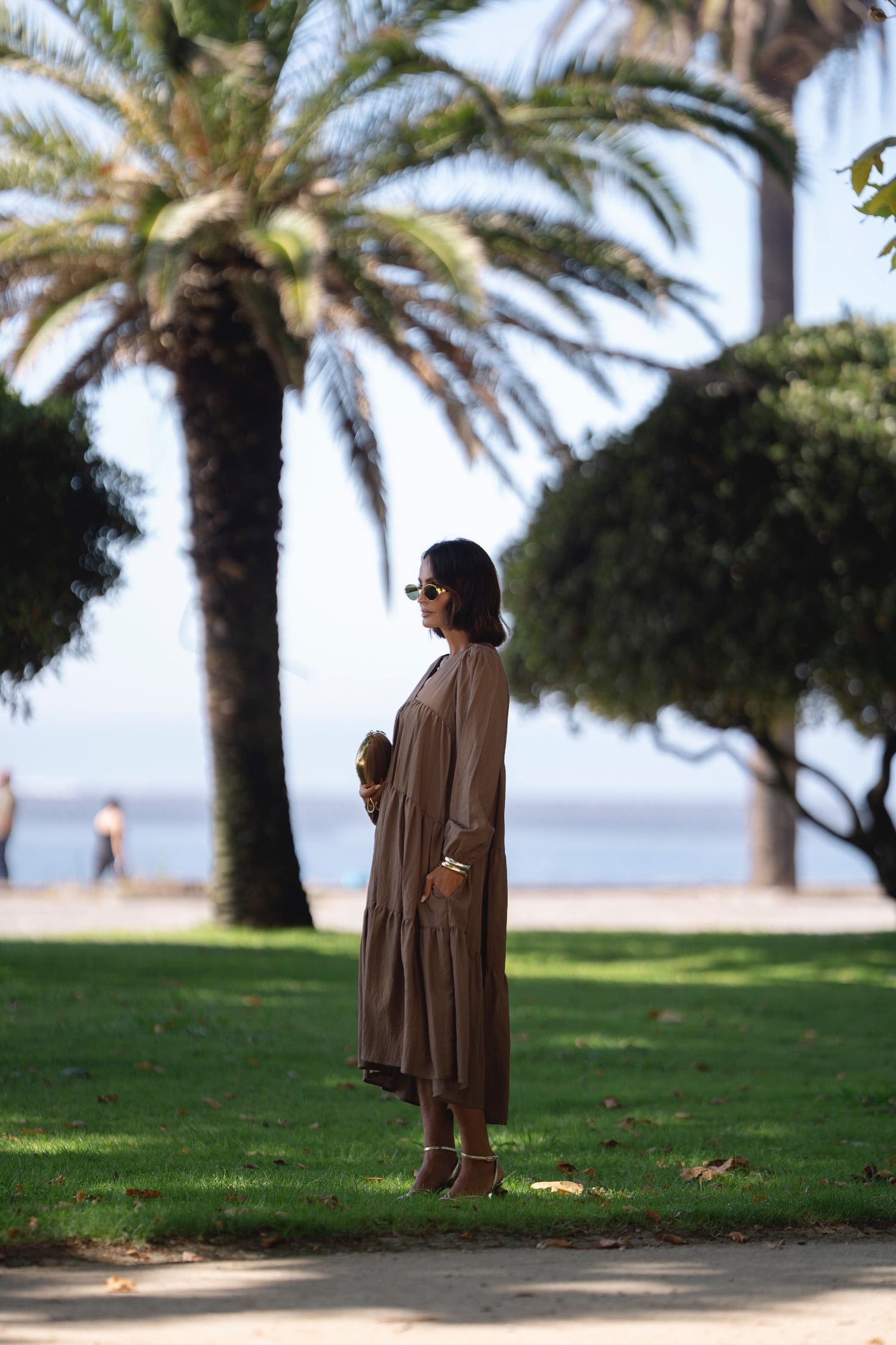 - En tejido fluido color beige