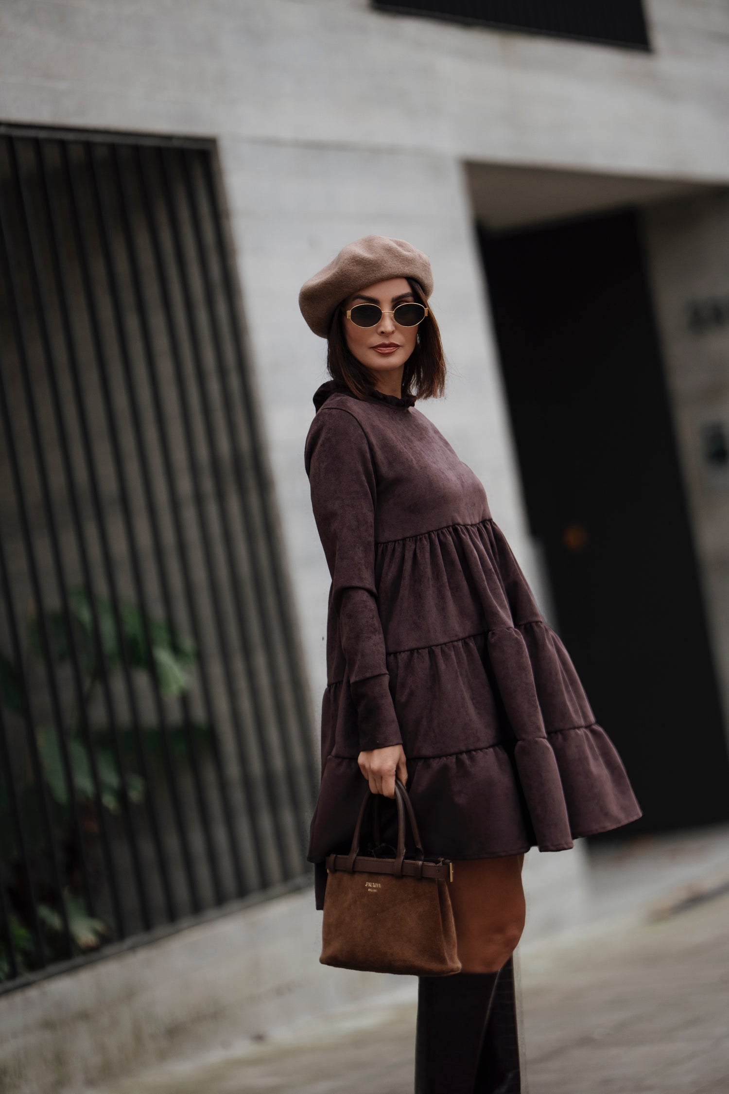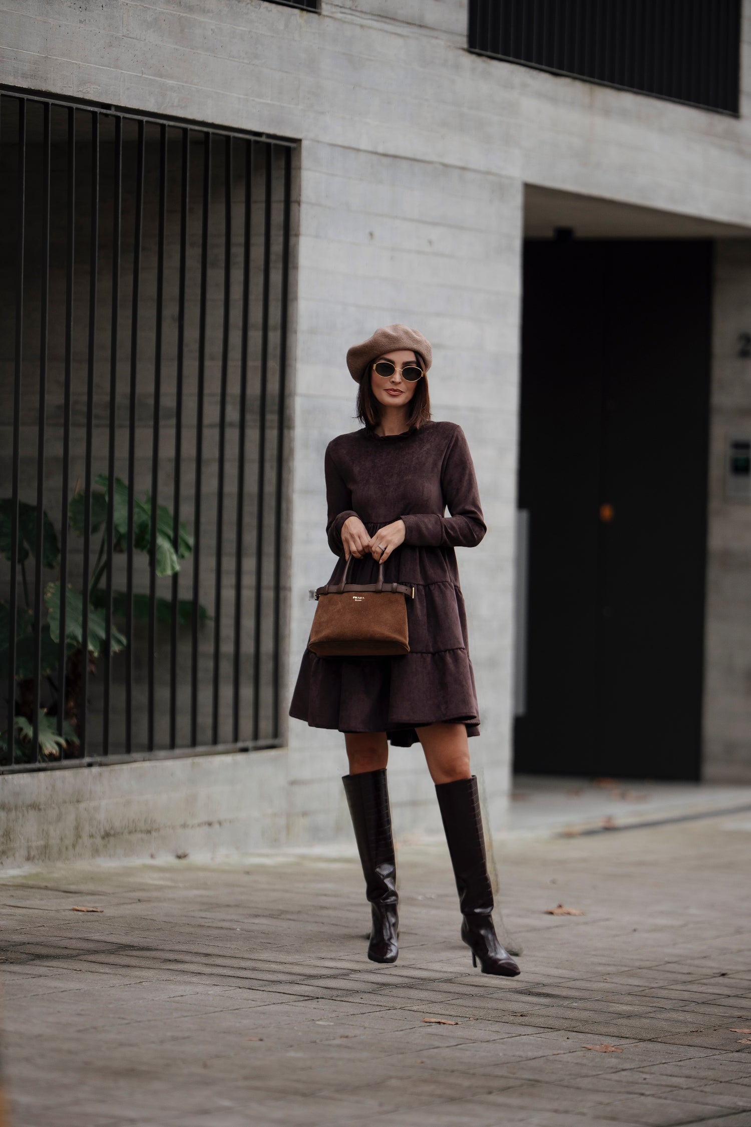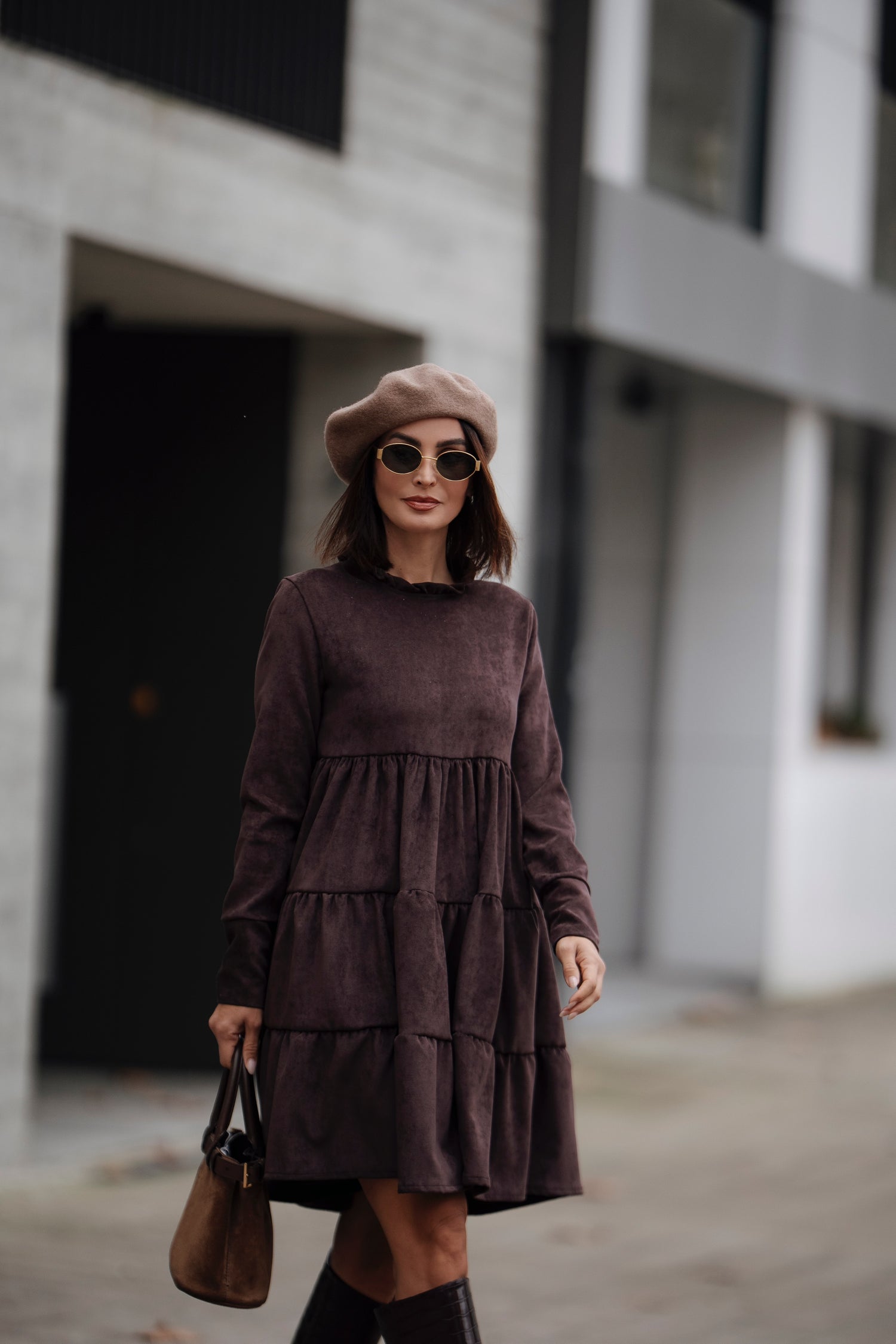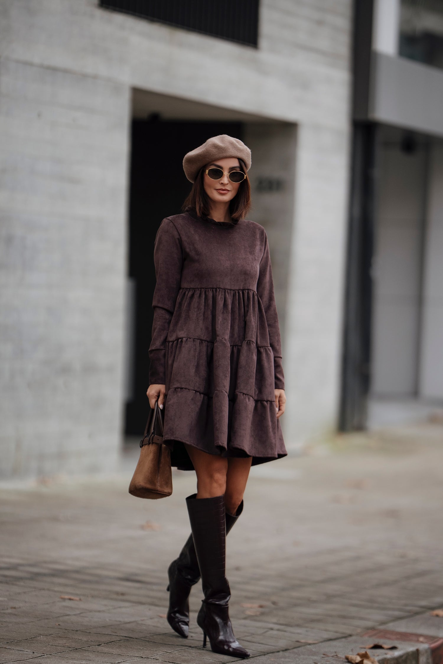 Vestido corto de terciopelo marrón